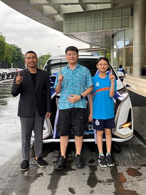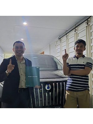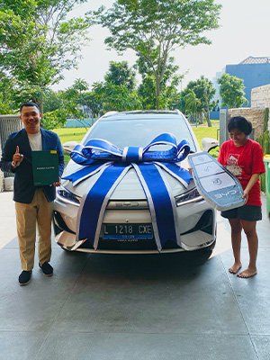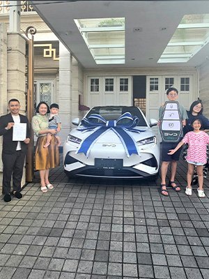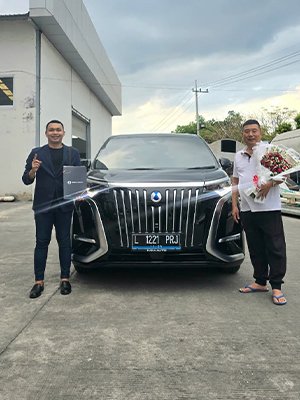 Galeri foto penyerahan unit Denza dan BYD. Dokumentasi pelanggan bahagia, mobil listrik baru, serta layanan profesional dealer resmi.