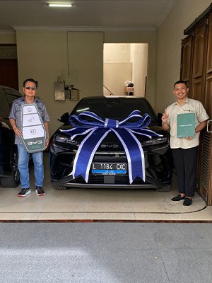 Kunjungi halaman galeri foto penyerahan unit sekarang. Saksikan bagaimana pelanggan kami menikmati momen spesial bersama mobil listrik baru mereka.